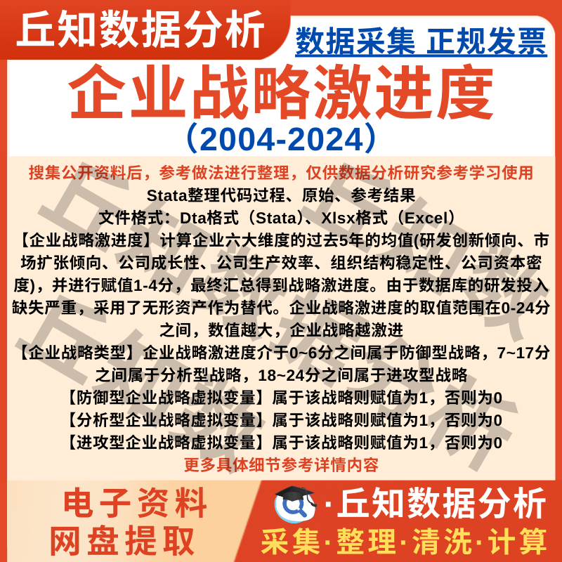 【普通数据】上市公司战略激进度2024-2004年企业数据stata代码Excel剔除缩尾