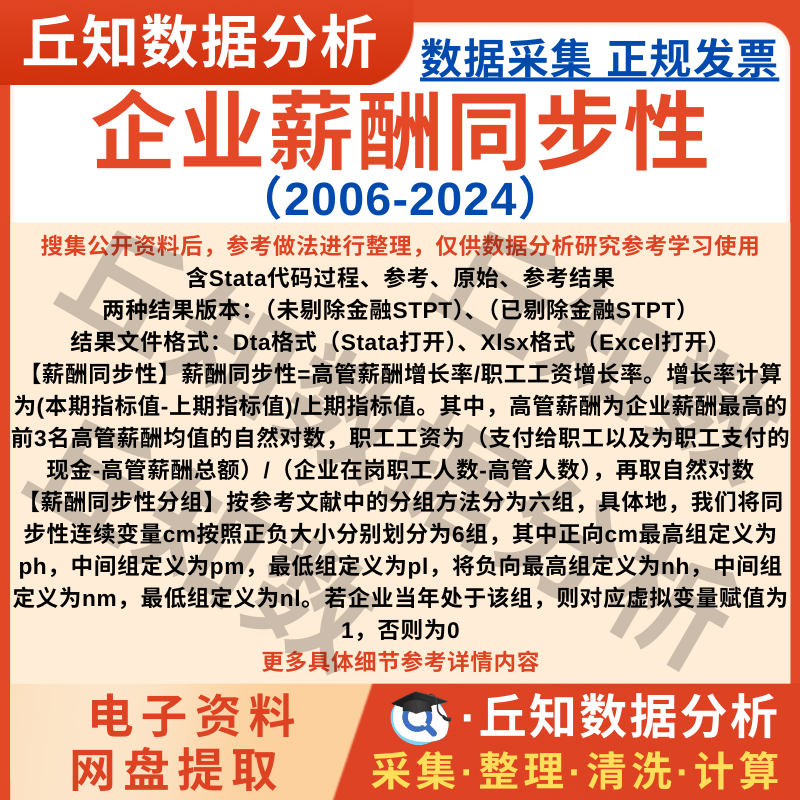【高级数据】上市公司薪酬同步性2024-2006年Stata代码企业分组变量数据Excel