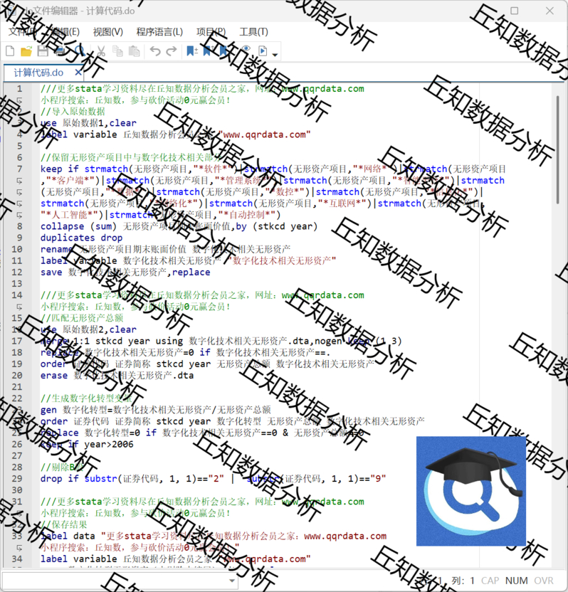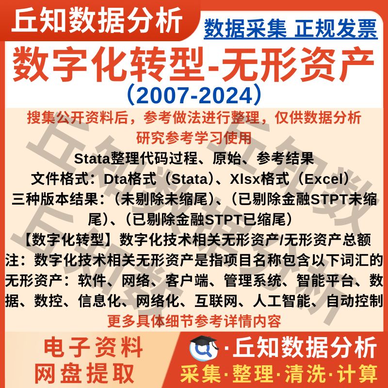 【普通数据】企业数字化转型(无形资产)2024-2007Stata代码上市公司数据Excel
