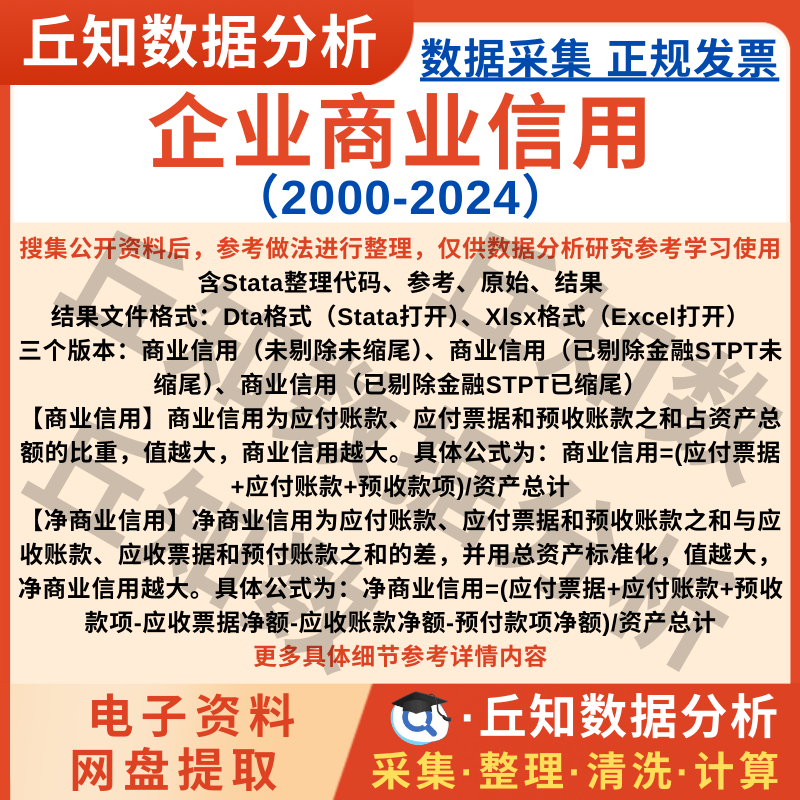 【普通数据】商业信用/净商业信用2024-2000年Stata代码上市公司企业数据Excel