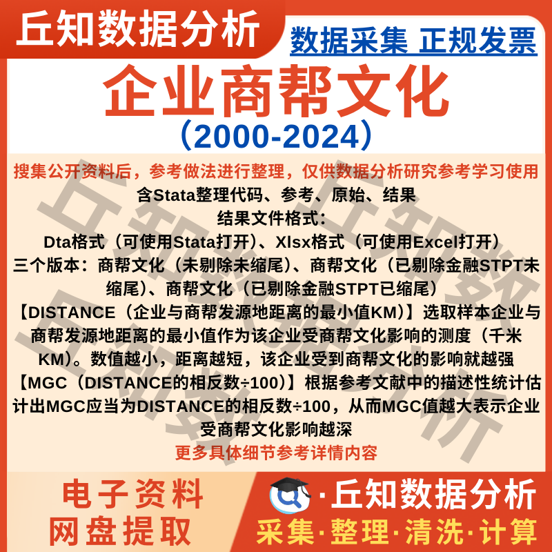 【普通数据】企业商帮文化2024-2000年上市公司数据Stata代码剔除金融STPT缩尾