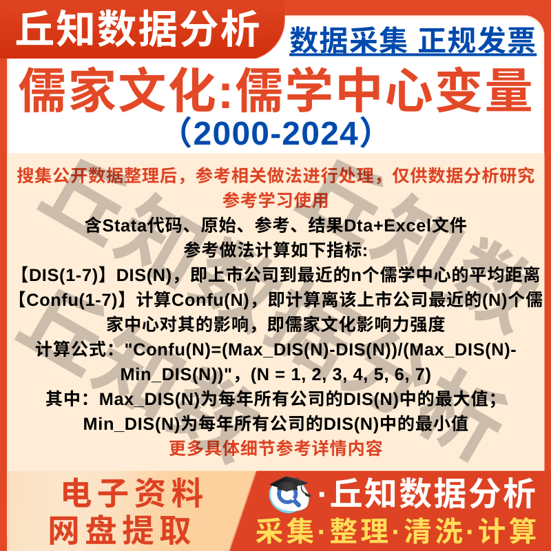 【高级数据】儒家文化影响力强度2024-2000年儒学中心Confu变量上市公司数据表