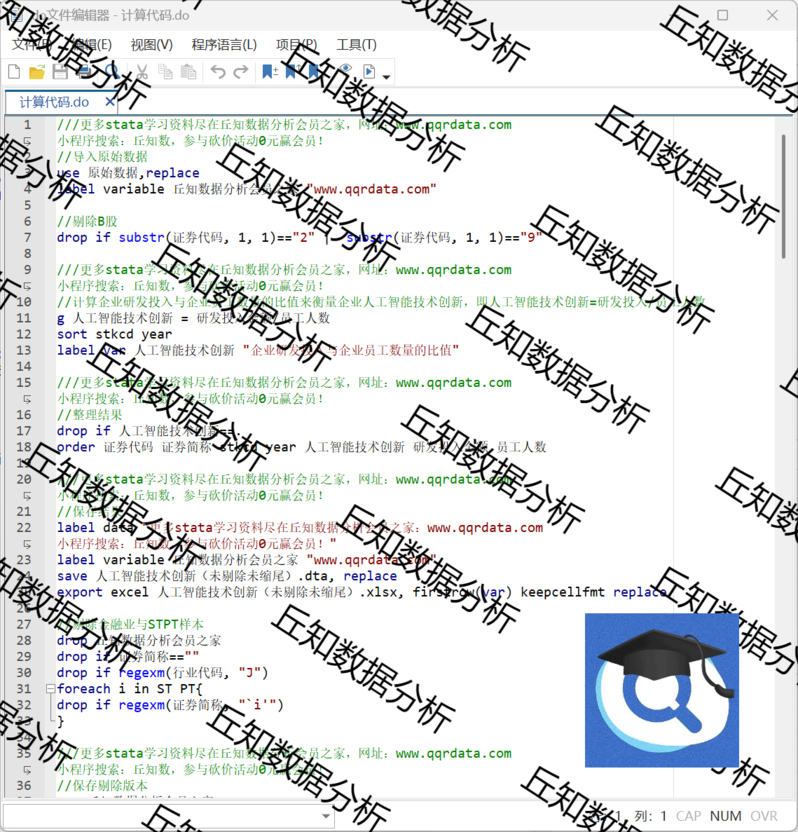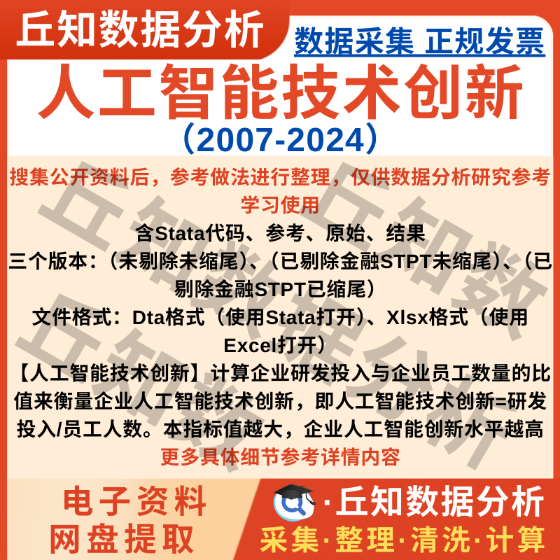 【普通数据】企业人工智能技术创新2024-2007年Stata代码上市公司数据剔除缩尾