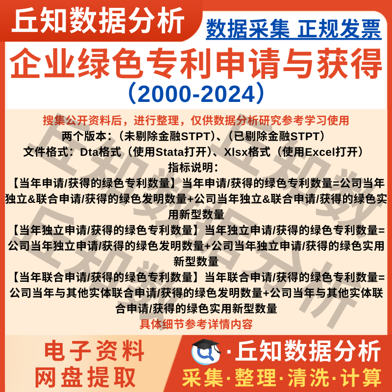 【普通数据】上市公司绿色专利申请与获得数2024-2000年已匹配行业含剔除版本