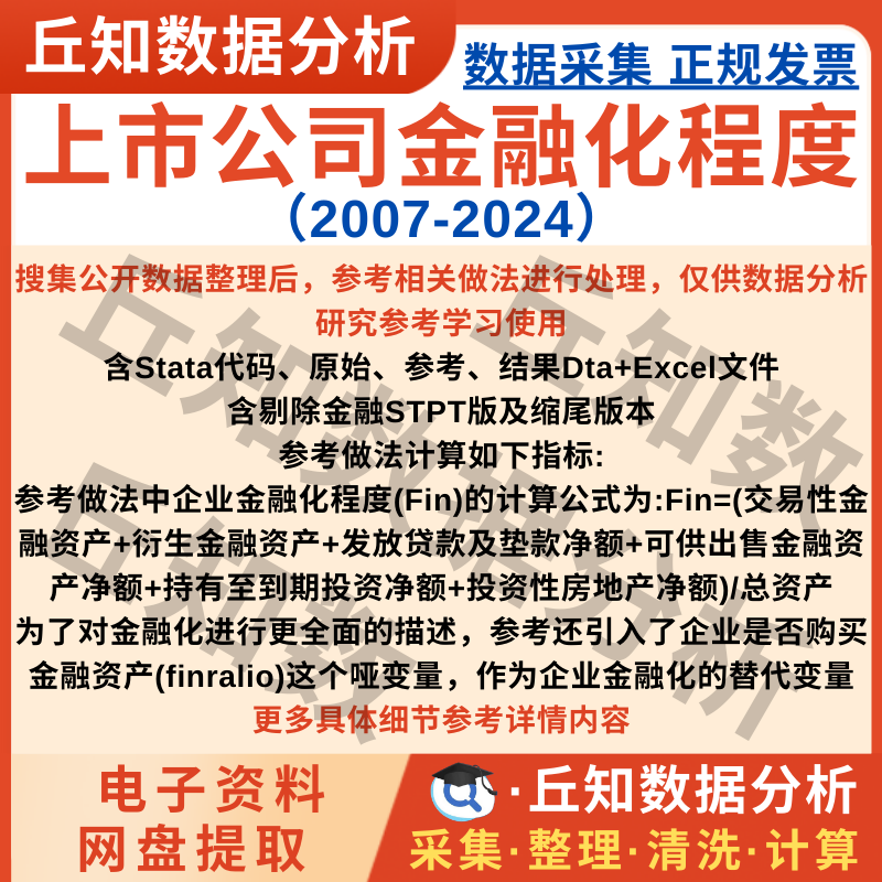 【普通数据】上市公司金融化程度2024-2007年数据含stata代码匹配行业剔除缩尾