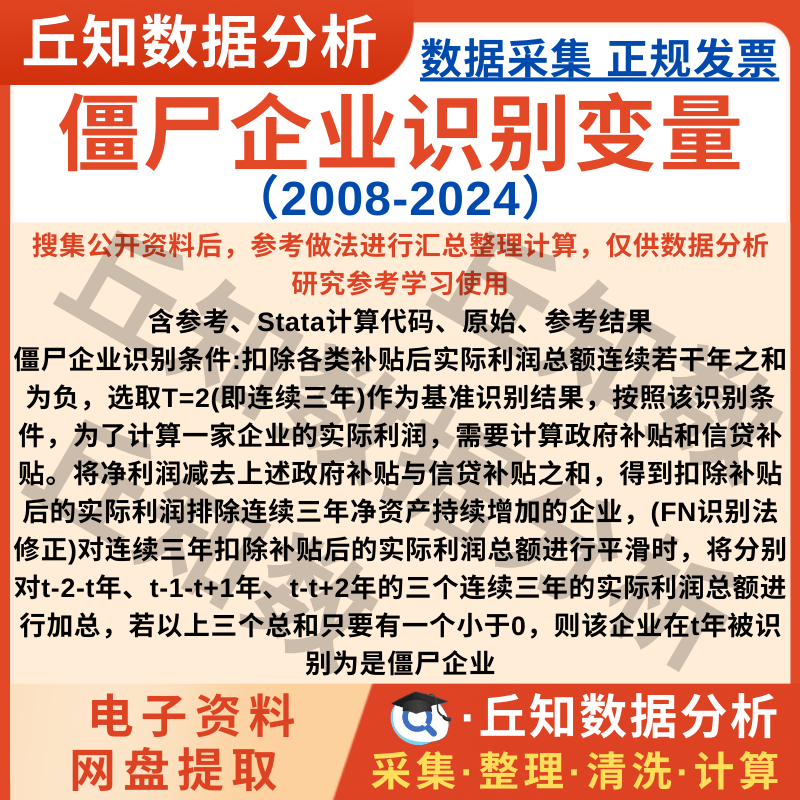 【高级数据】僵尸企业识别虚拟变量2024-2008参考Stata代码上市公司数据Excel