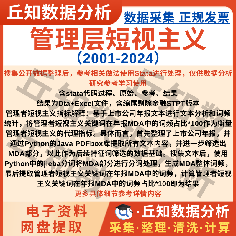 【普通数据】管理层短视主义2024-2001词频数据Stata代码上市公司企业含剔除版