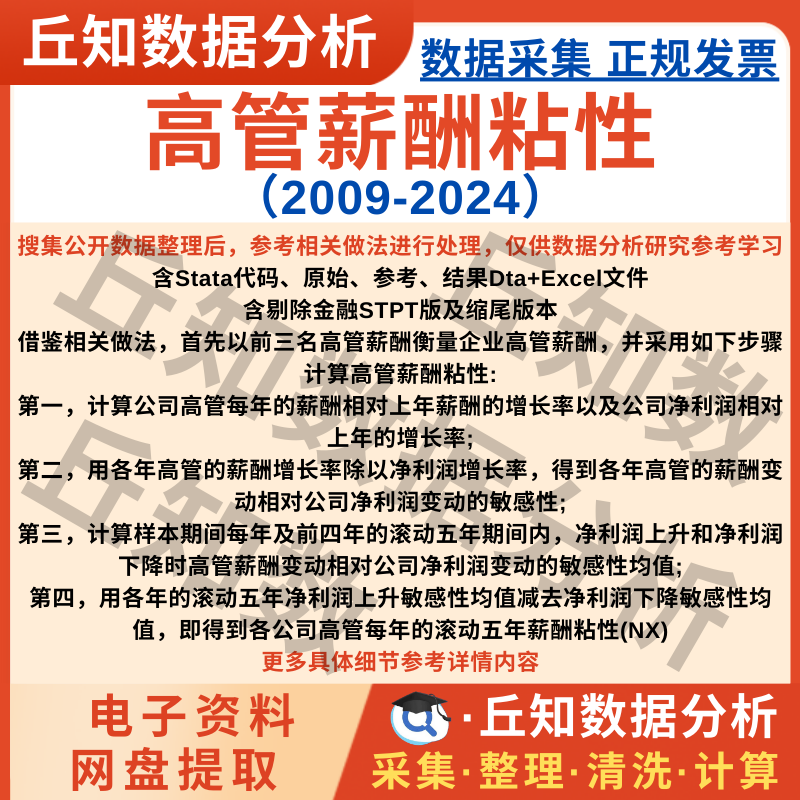 【普通数据】上市公司高管薪酬粘性2024-2009企业数据含stata代码Excel表剔除