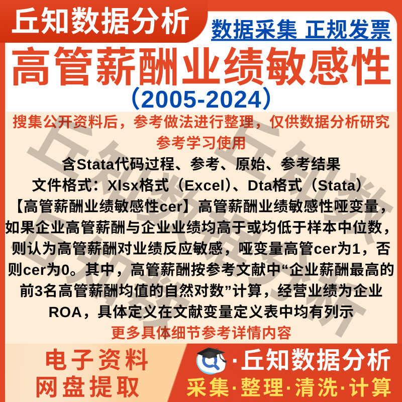 【普通数据】高管薪酬业绩敏感性2024-2005年含Stata代码虚拟01分组哑变量企业