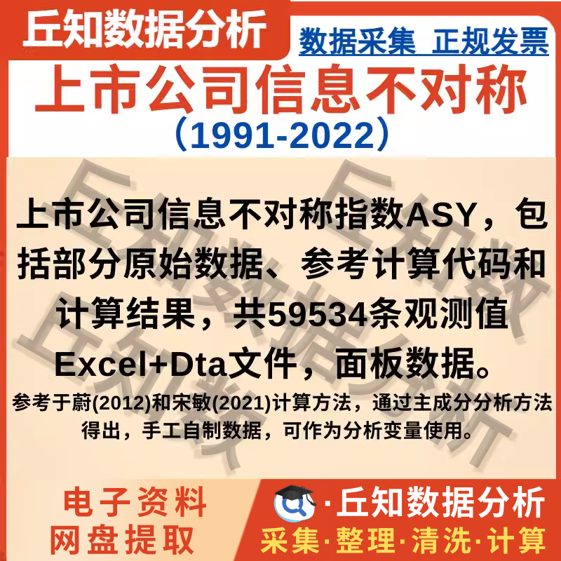 【普通数据】上市公司信息不对称ASY指数数据1991-2022年,主成分分析面板数据