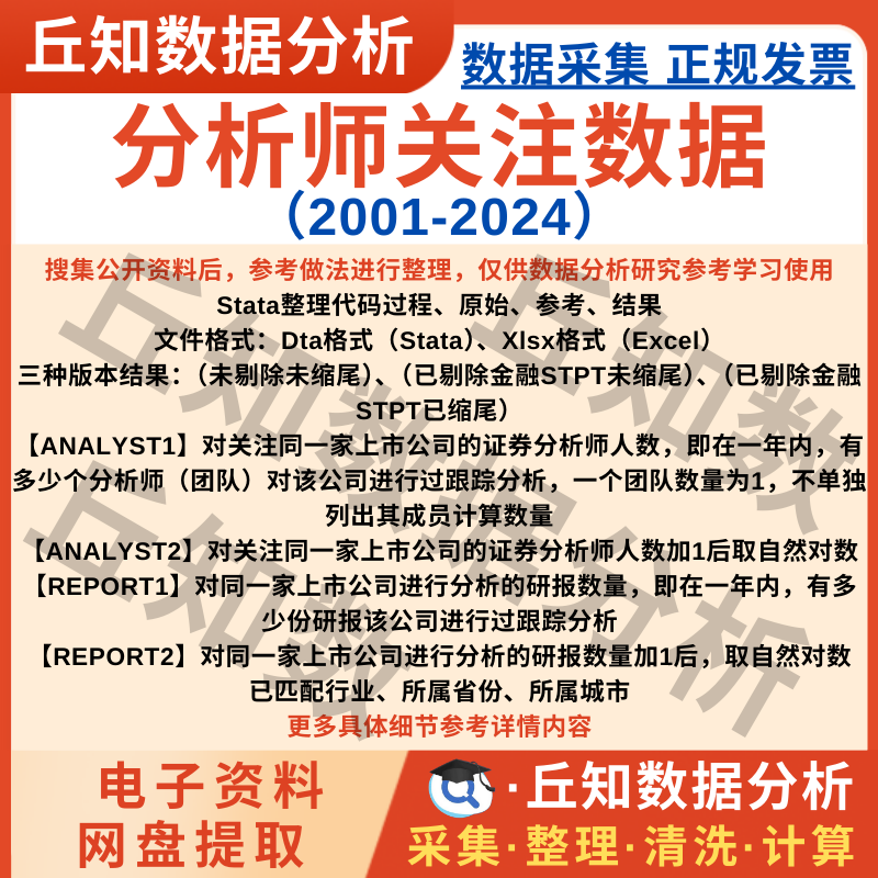 【普通数据】分析师关注数据2024-2001人数研报数Stata代码上市公司企业含剔除