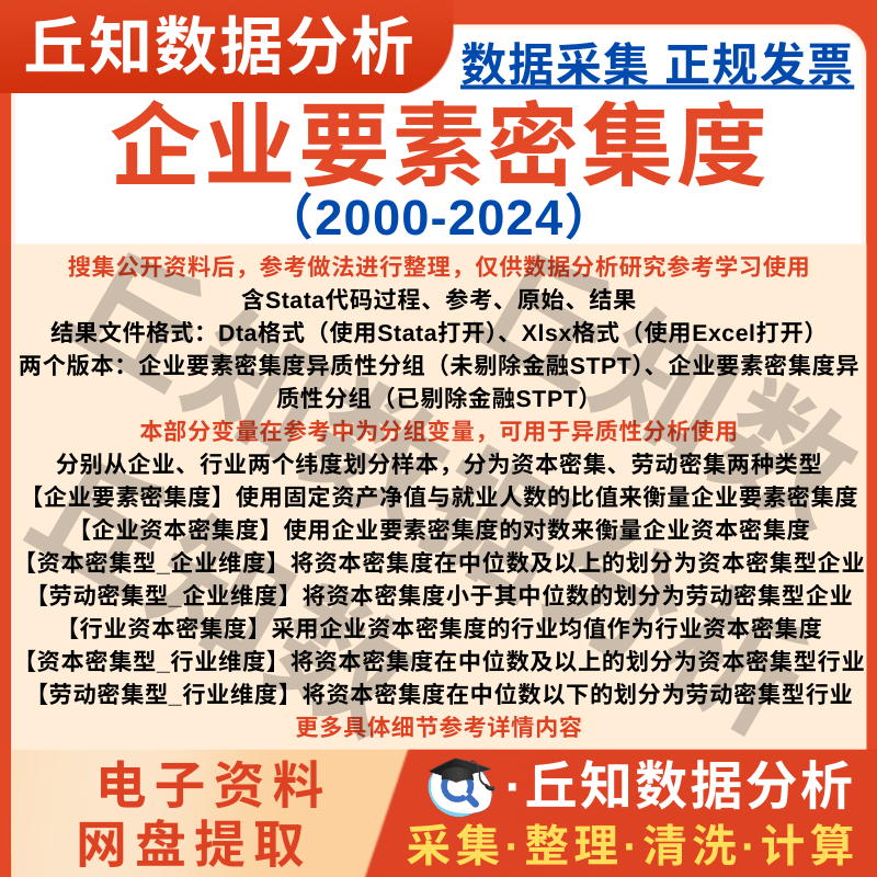 【普通数据】企业要素密集度2024-2000资本/劳动密集型stata代码上市公司数据