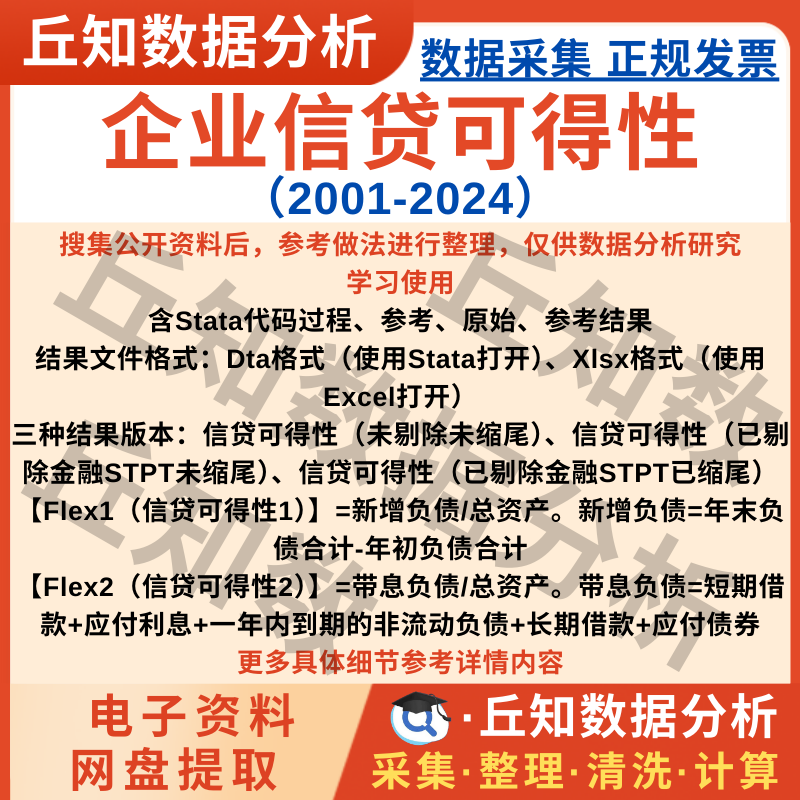 【普通数据】企业信贷可得性2024-2001数据中介机制变量含Stata代码剔除缩尾表