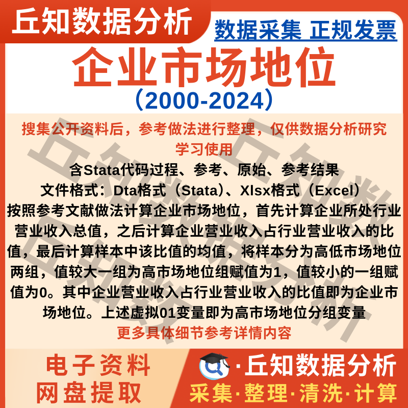 【普通数据】企业市场地位2024-2000年Stata数据Excel上市公司异质性分组变量