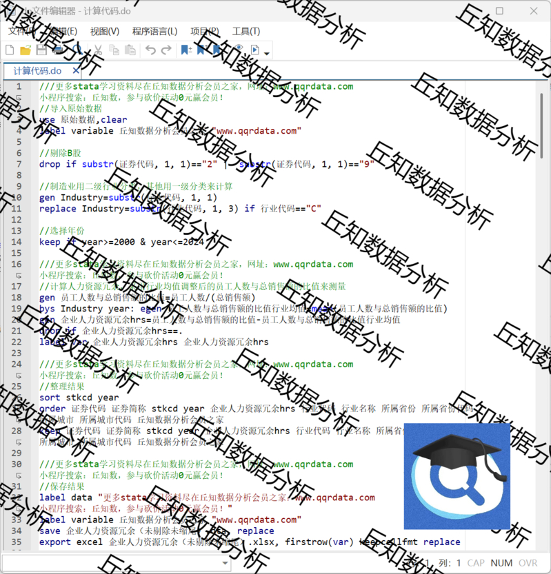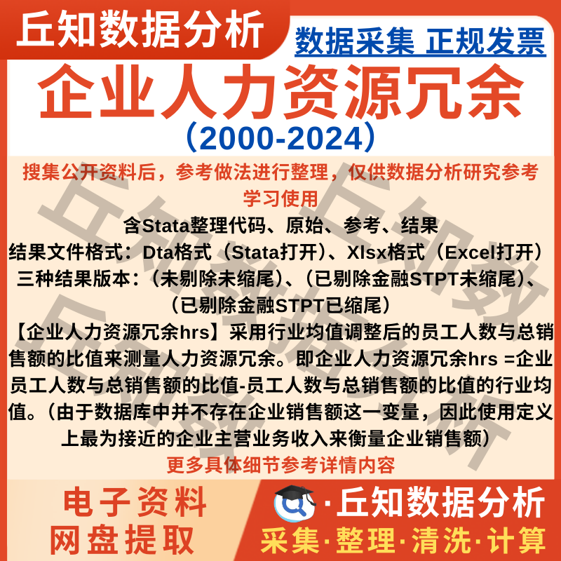 【普通数据】企业人力资源冗余2024-2000年数据上市公司Stata代码Excel表剔除