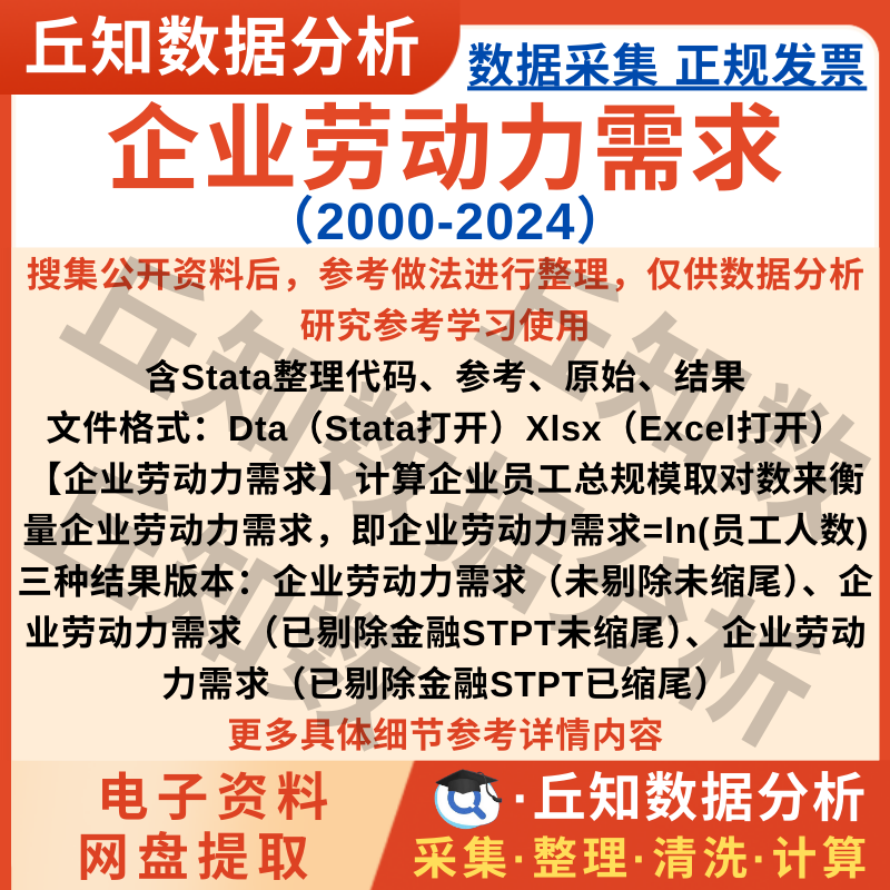 【普通数据】企业劳动力需求2024-2000上市公司Excel数据表含stata代码含剔除