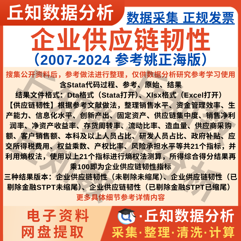 【普通数据】供应链韧性2024-2007年数据Stata代码上市公司企业Excel表姚正海