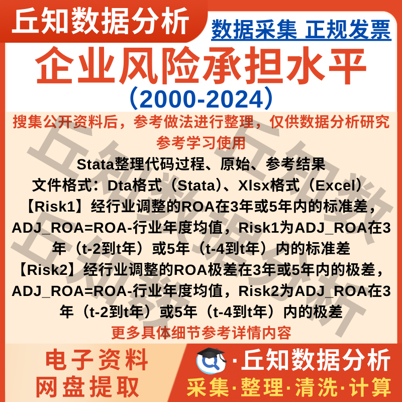 【普通数据】企业风险承担水平2024-2000数据上市公司3或5年窗口期StataExcel