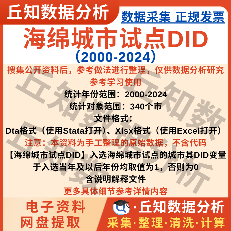 【普通数据】海绵城市试点DID虚拟变量2024-2000年市级原始数据整理Stata格式
