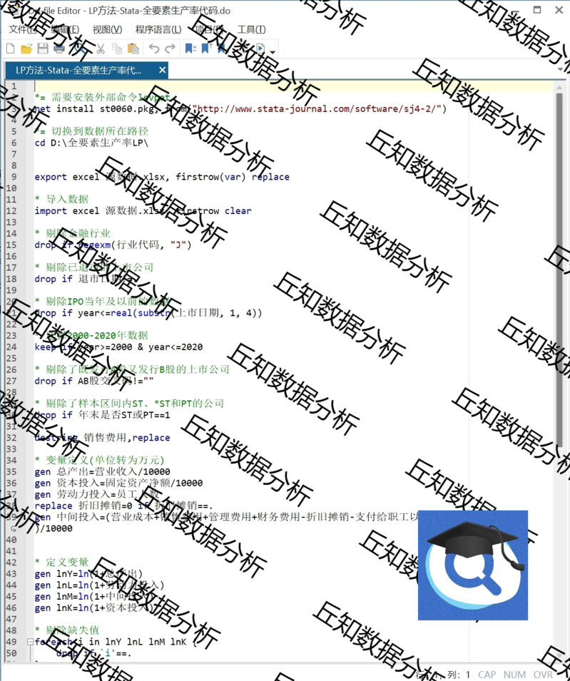 【普通数据】上市公司全要素生产率LP法Stata计算代码(含案例数据2000-2020)