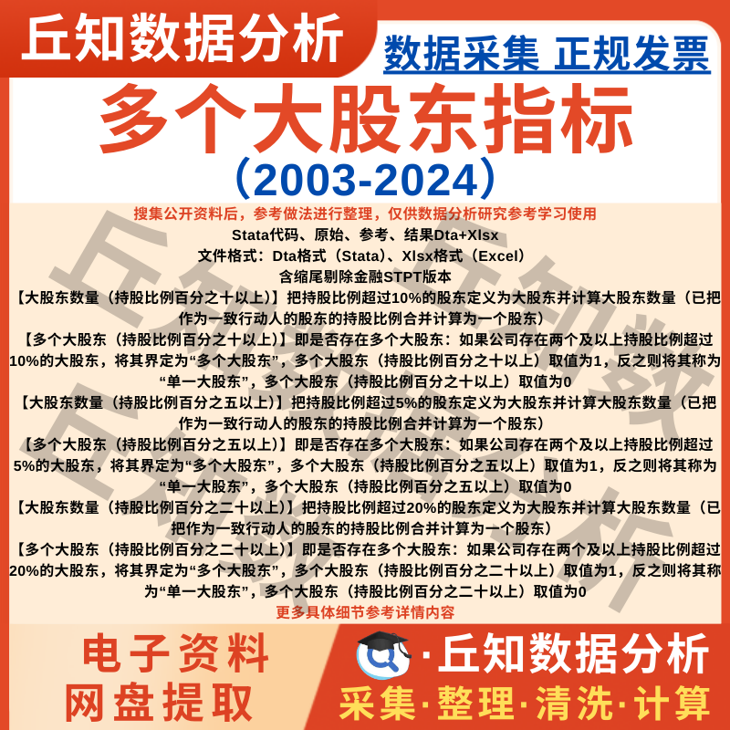 【普通数据】是否多个大股东及大股东数量2024-2003年上市公司数据Stata企业表