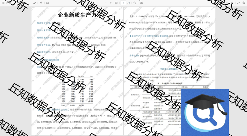 丘知数据分析会员之家,致力于提供高质量的社科数据搜集整理与分析服务,是国内领先的社科类数据服务商。在科研数据领域,我们认真对待每一位同学和老师的反馈,每年整理更新数千个变量指标,已累计服务数万科研工作者,在满足广大会员科研数据需求的同时全力提升售后服务质量,力求为大家提供高质量的社科数据服务! 在研究专题方面,我们搜集整理制作的数据专题包括但不限于:上市公司:管理层及治理、研发创新、投资融资、供应链、信息披露、会计审计税收、数字化、智能化、新质生产力、绿色发展、文本分析专题等;区域研究:空间计量、市场经济、科技创新、绿色发展、数字化、智能化、新质生产力、文本分析专题等。 丘知数据分析会员之家,每年更新推送近千个数据栏目,所有数据均支持单独购买,开通会员则可享受每日免费下载次数,欢迎老师同学们浏览订阅!如果您有定制需求也可以联系我们。