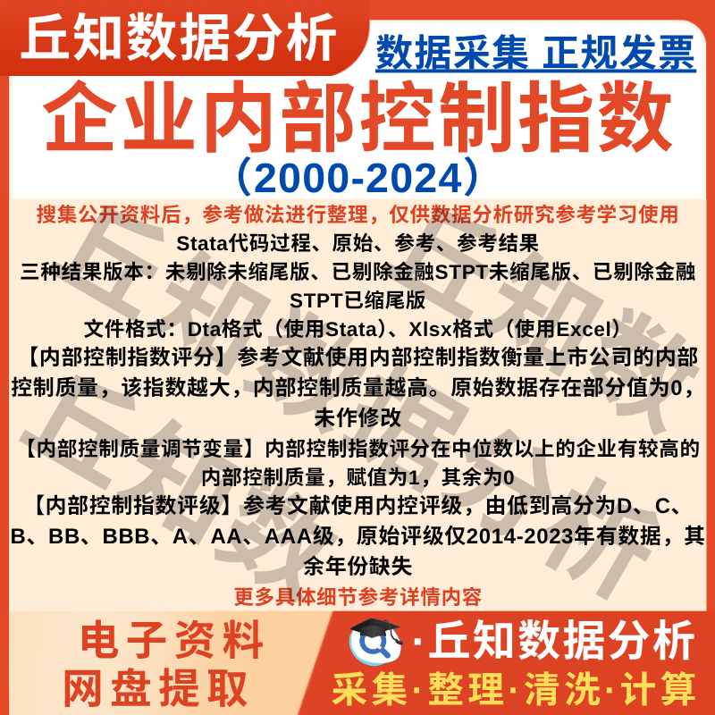 【普通数据】内部控制质量调节变量2024-2000行业Stata表格指数Excel剔除缩尾