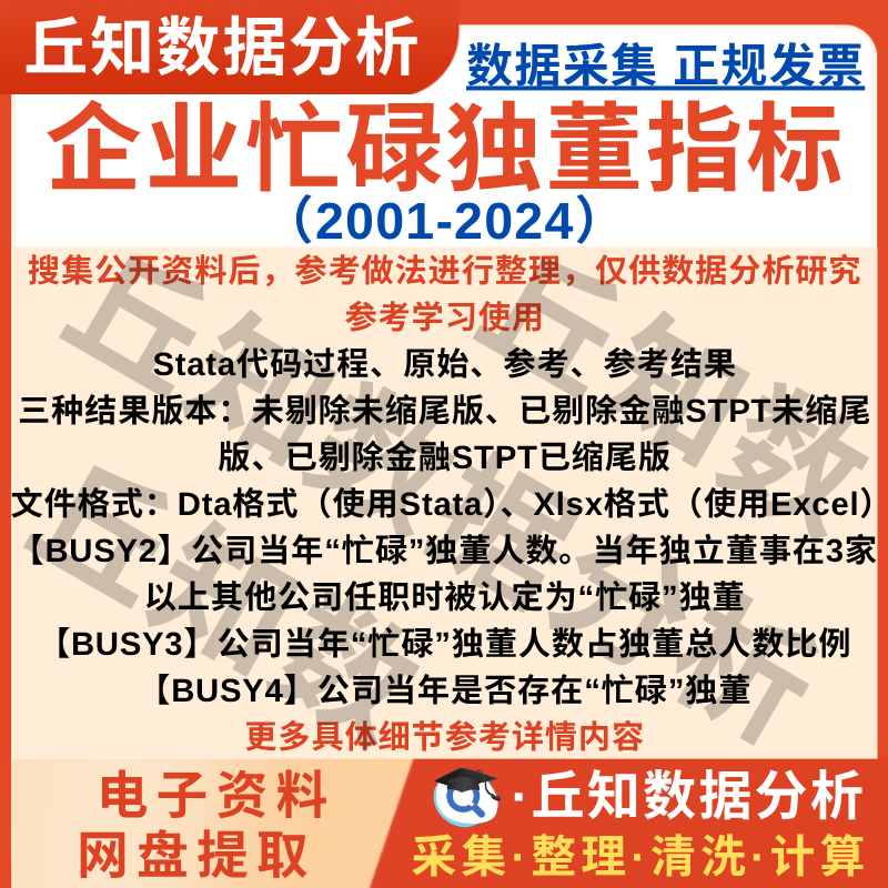 【普通数据】企业忙碌独董数据2024-2001年上市公司含Stata代码Excel结果剔除