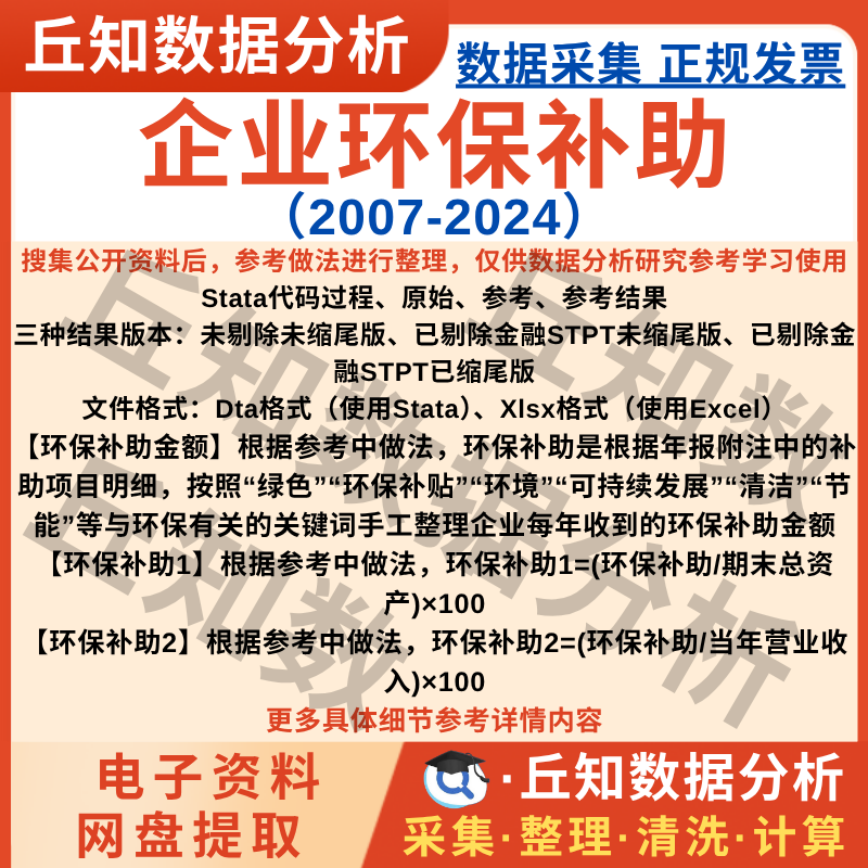 【普通数据】企业环保补助2024-2007年上市公司数据Stata表格整理含Excel剔除
