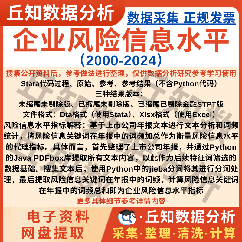 【高级数据】企业风险信息水平2024-2000年上市公司词频数据Excel表格剔除缩尾