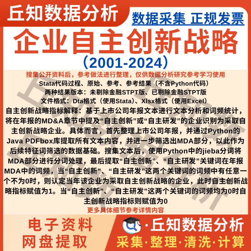 【高级数据】企业自主创新战略2024-2001年上市公司数据Stata缩尾剔除Excel表