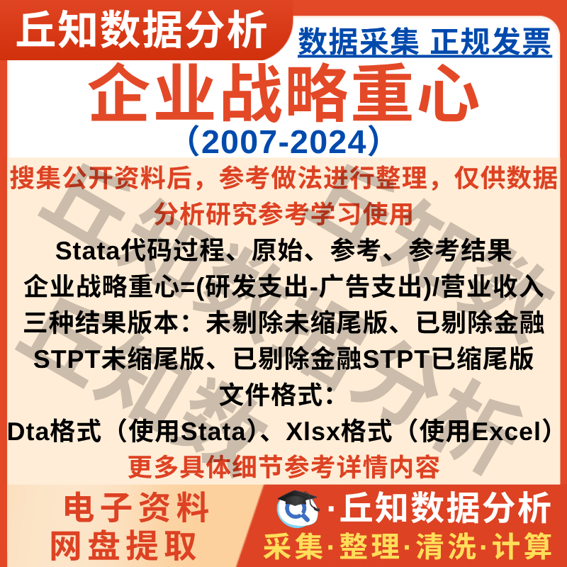 【普通数据】企业战略重心2024-2007上市公司数据缩尾剔除匹配行业含Stata代码