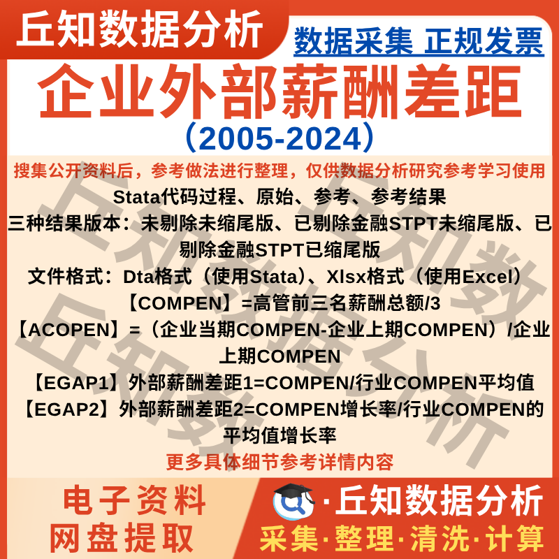 【高级数据】企业外部薪酬差距2024-2005上市公司stata数据Excel行业剔除缩尾