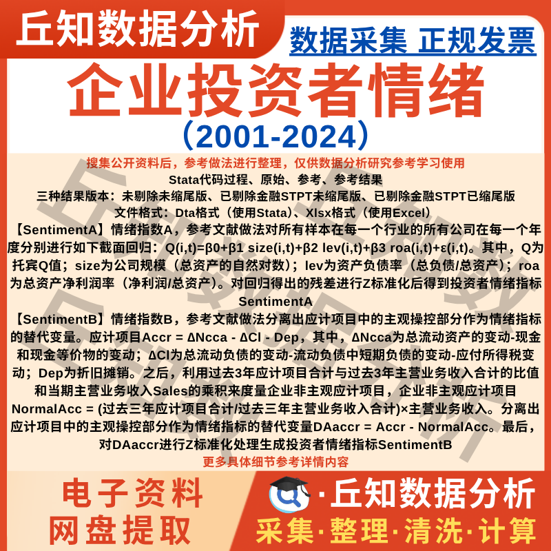 【高级数据】企业投资者情绪2024-2001年上市公司数据Stata代码Excel缩尾剔除