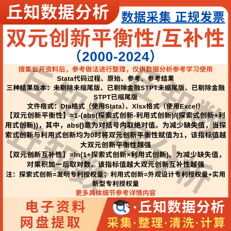 【普通数据】双元创新平衡性/互补性2024-2000年上市公司数据企业含StataExcel