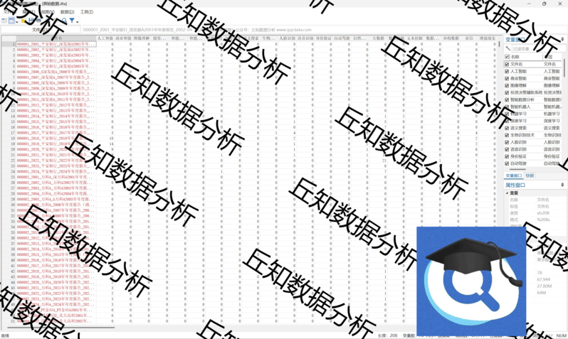 丘知数据分析会员之家,致力于提供高质量的社科数据搜集整理与分析服务,是国内领先的社科类数据服务商。在科研数据领域,我们认真对待每一位同学和老师的反馈,每年整理更新数千个变量指标,已累计服务数万科研工作者,在满足广大会员科研数据需求的同时全力提升售后服务质量,力求为大家提供高质量的社科数据服务! 在研究专题方面,我们搜集整理制作的数据专题包括但不限于:上市公司:管理层及治理、研发创新、投资融资、供应链、信息披露、会计审计税收、数字化、智能化、新质生产力、绿色发展、文本分析专题等;区域研究:空间计量、市场经济、科技创新、绿色发展、数字化、智能化、新质生产力、文本分析专题等。 丘知数据分析会员之家,每年更新推送近千个数据栏目,所有数据均支持单独购买,开通会员则可享受每日免费下载次数,欢迎老师同学们浏览订阅!如果您有定制需求也可以联系我们。
