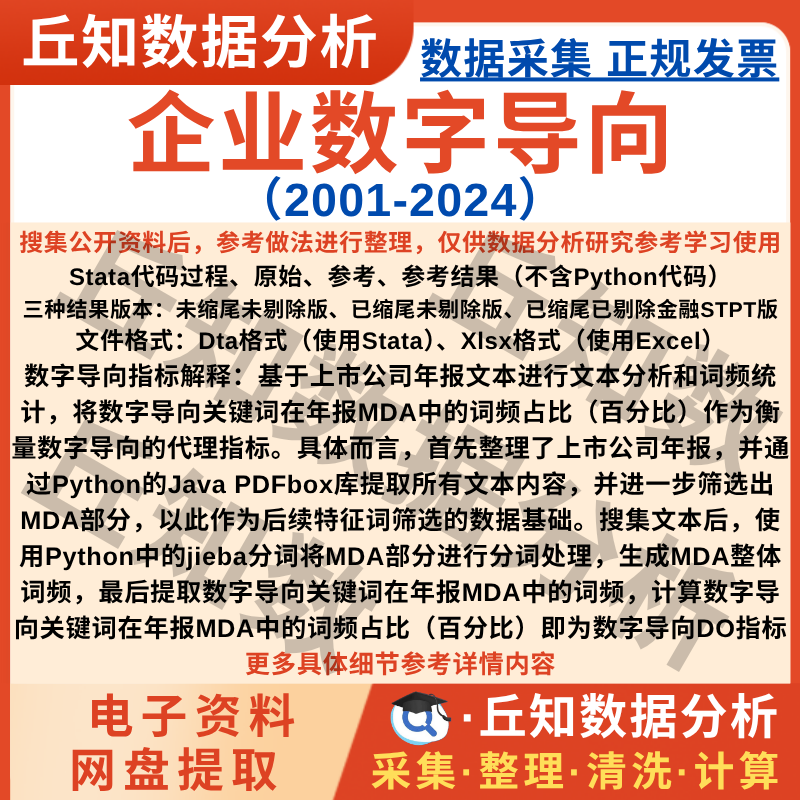 【高级数据】企业数字导向2024-2001上市公司词频数据Excel含剔除缩尾匹配行业