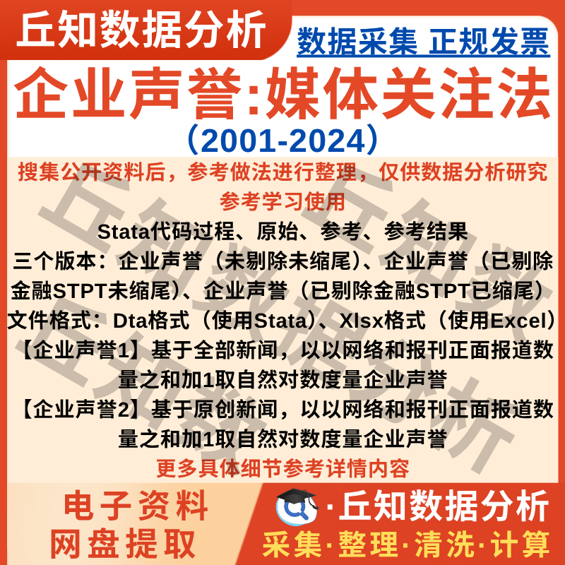 【普通数据】企业声誉媒体关注法2024-2001年上市公司Stata数据Excel缩尾剔除