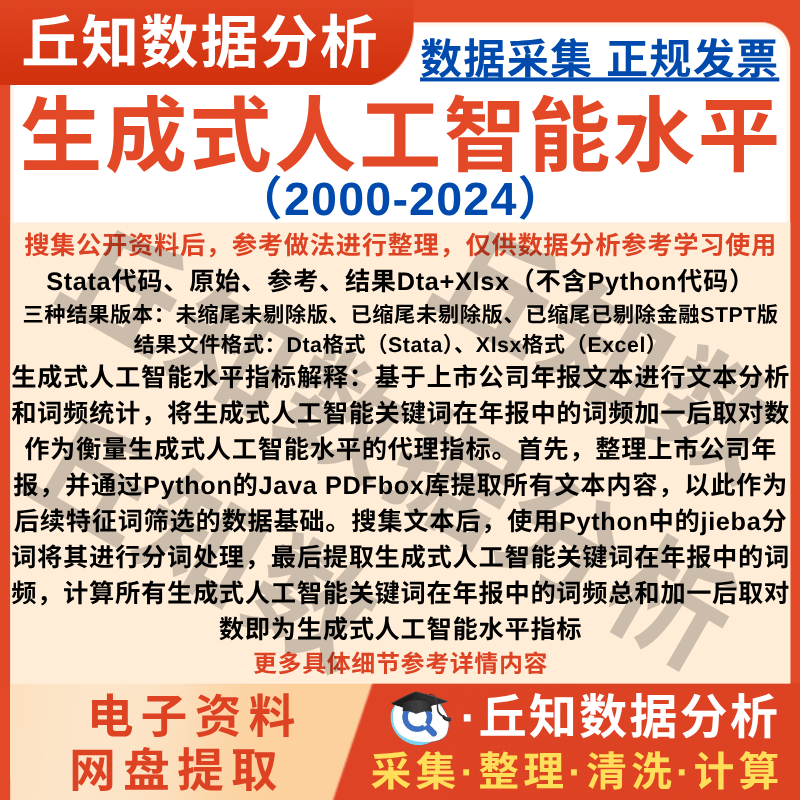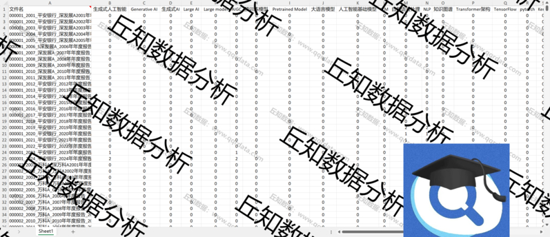 【高级数据】企业生成式人工智能水平2024-2000年上市公司数据Excel词频结果表
