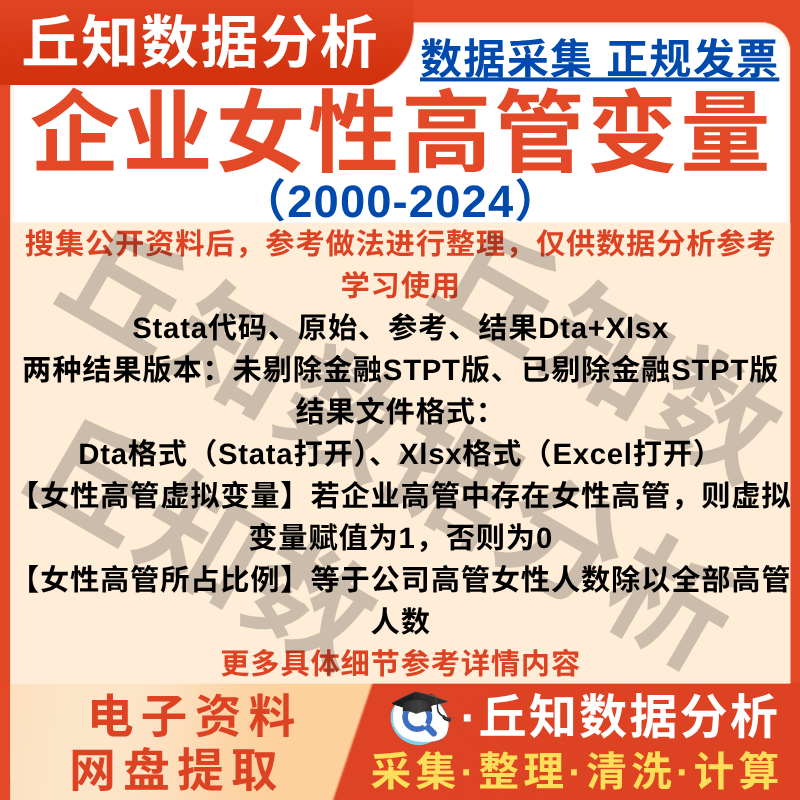 【普通数据】企业女性高管变量2024-2000上市公司数据虚拟变量占比例Excel表格