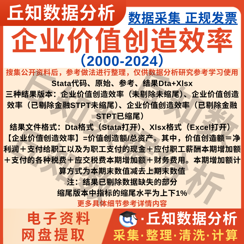 【高级数据】企业价值创造效率2024-2000上市公司数据Excel表含Stata代码过程