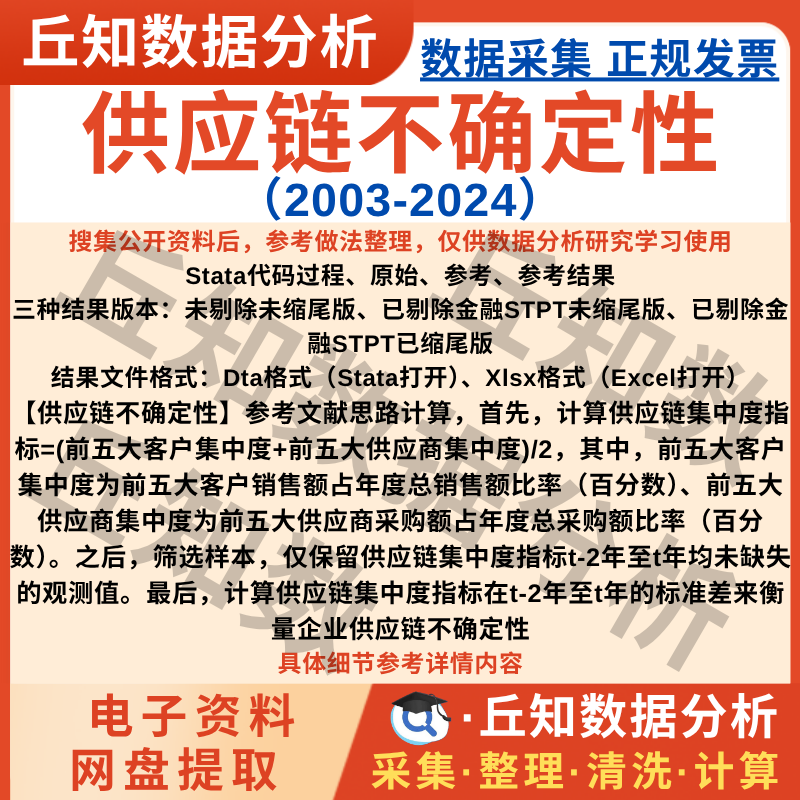 【高级数据】企业供应链不确定性2024-2003年上市公司数据含Stata代码Excel表