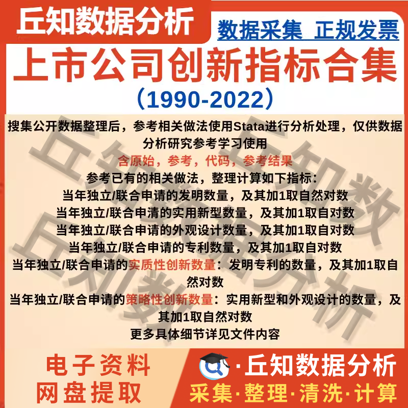 【普通数据】上市公司创新指标合集2022-1990含原始,参考stata代码,参考结果