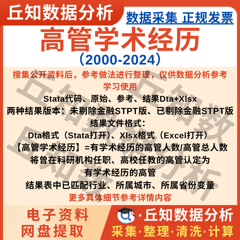 【普通数据】高管学术经历2024-2000年Stata代码上市公司数据企业Excel表格dta