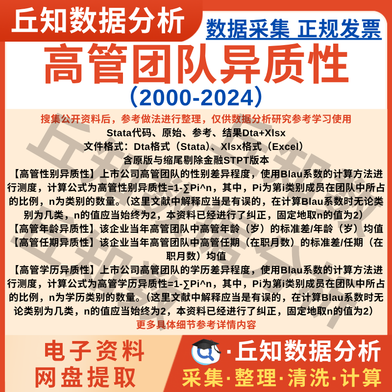 【普通数据】高管团队异质性2024-2000年四个纬度Stata代码上市公司数据含说明