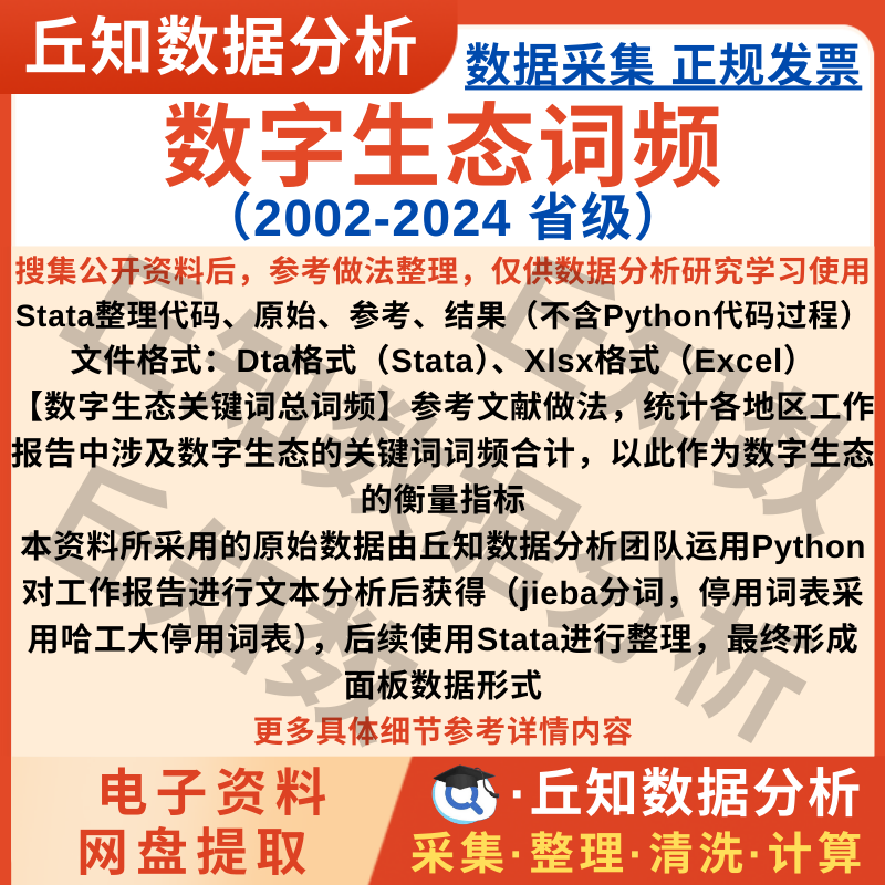 【高级数据】省级数字生态词频2024-2002年度数据Excel表格工作报告关键词统计