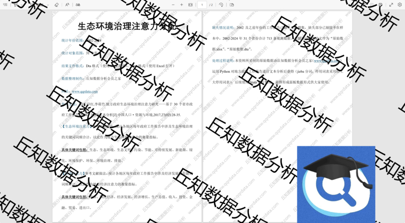 【高级数据】省级生态环境治理注意力分配数据2024-2002Excel工作报告关键词频