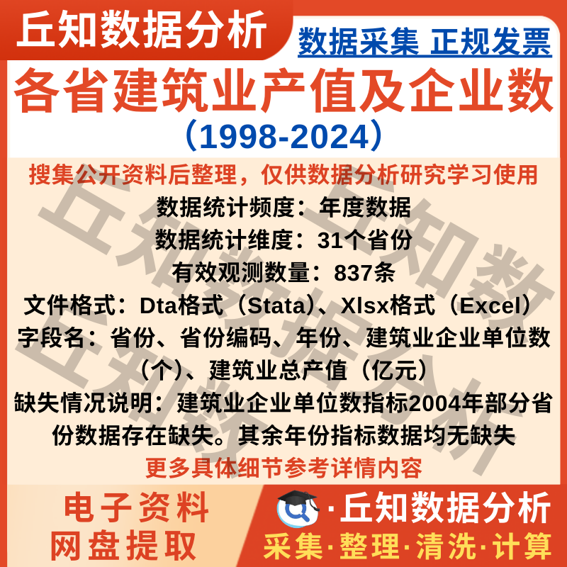 【普通数据】各省建筑业总产值及企业数2024-1998年度数据stataExcel地区代码