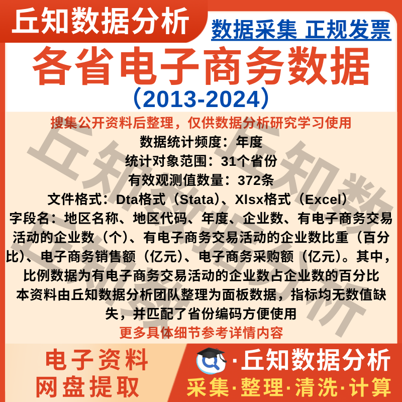 【普通数据】各省电子商务数据2024-2013年企业数、销售额、采购额汇总表Excel