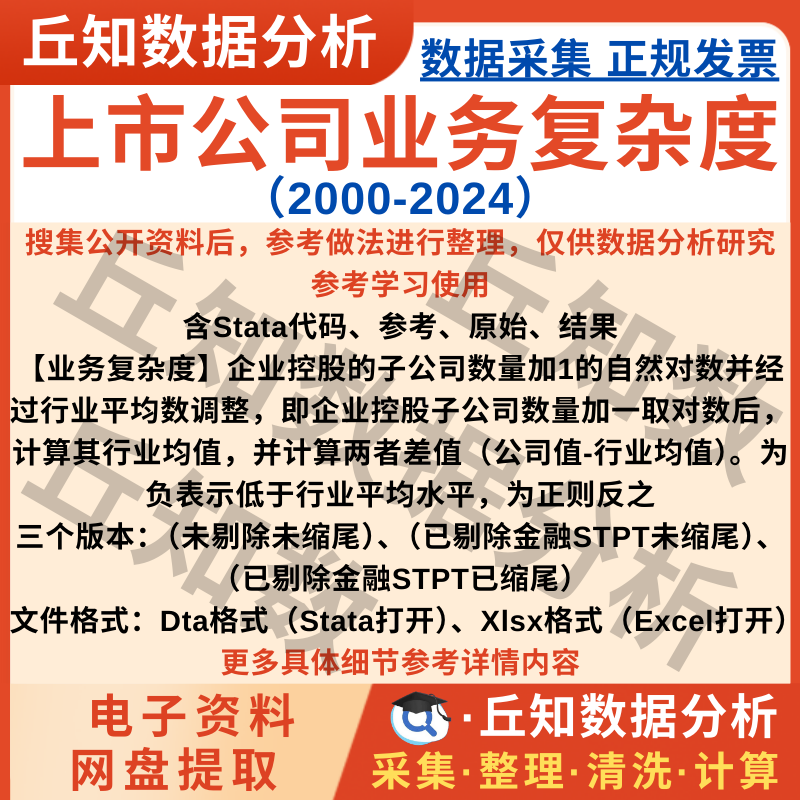 【普通数据】上市公司业务复杂度2024-2000年含stata代码Excel含缩尾剔除版本